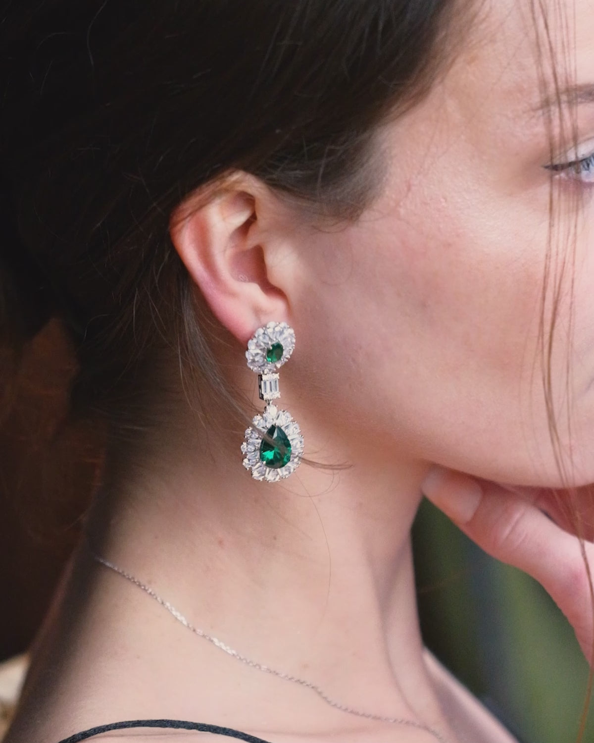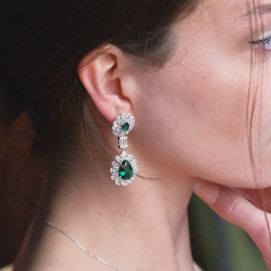These Éclatant drop earrings exude exquisite elegance and luxury. The deep green hue adds a natural vibrancy, enhancing the overall look with a touch of brilliance. They are not only a perfect choice for special occasions but also symbolize luxurious taste.