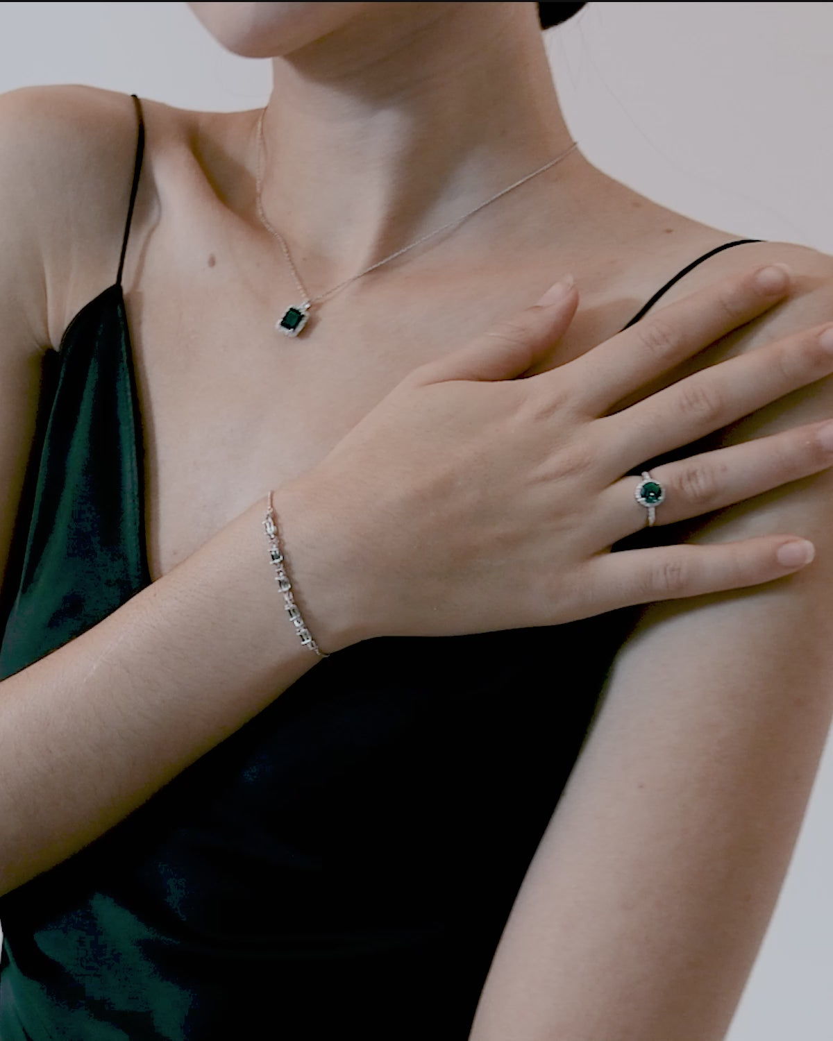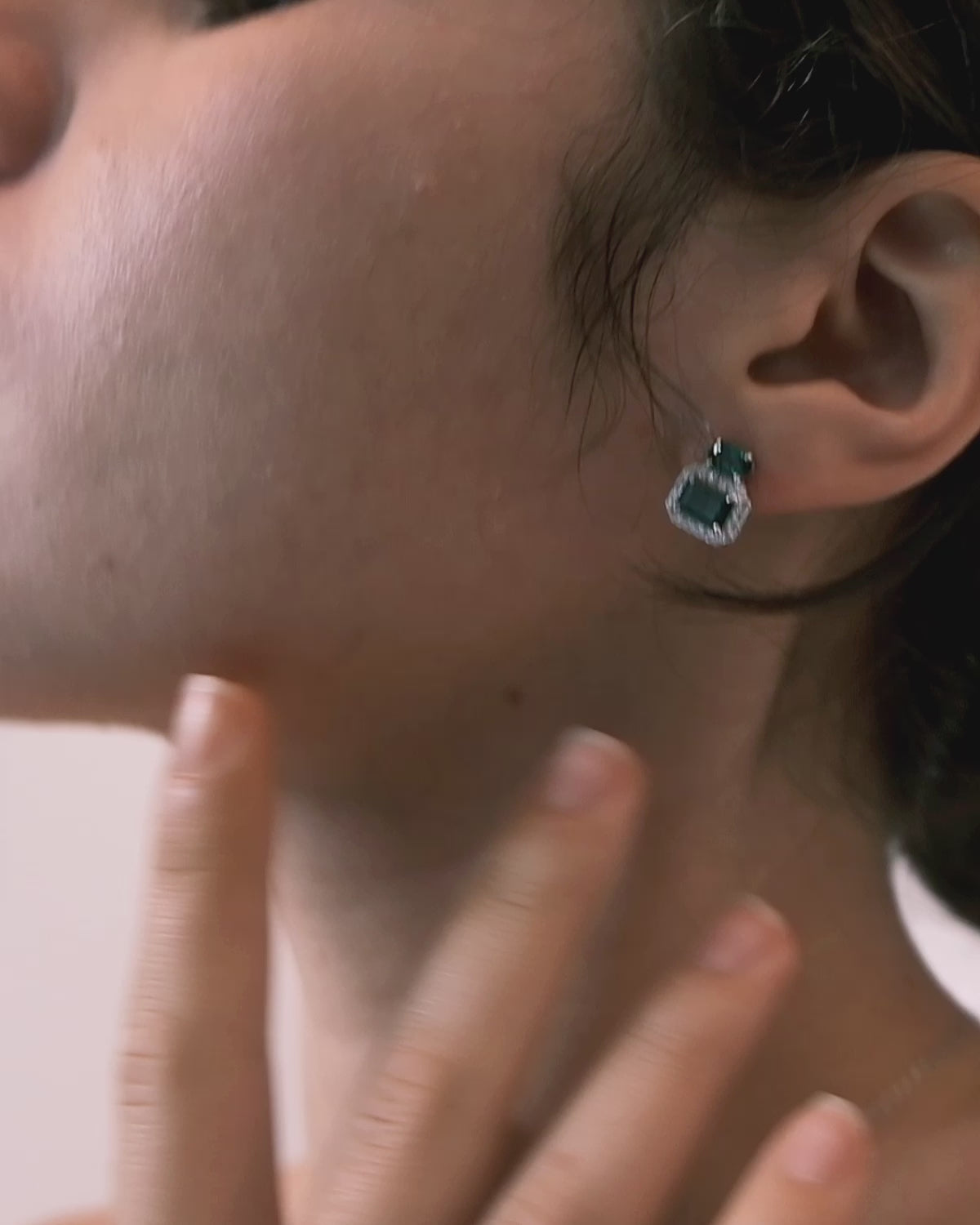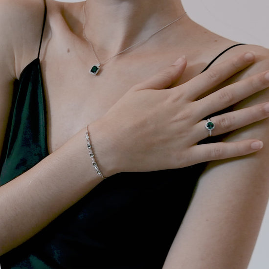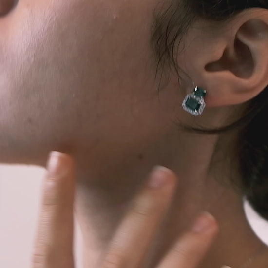 These Emerald square earrings, combining emerald gemstones and cubic zirconia, help you stand out on various occasions. The unique elegance of the emerald gemstones, along with their special symbolism as a good luck charm, allows you to confidently shine.